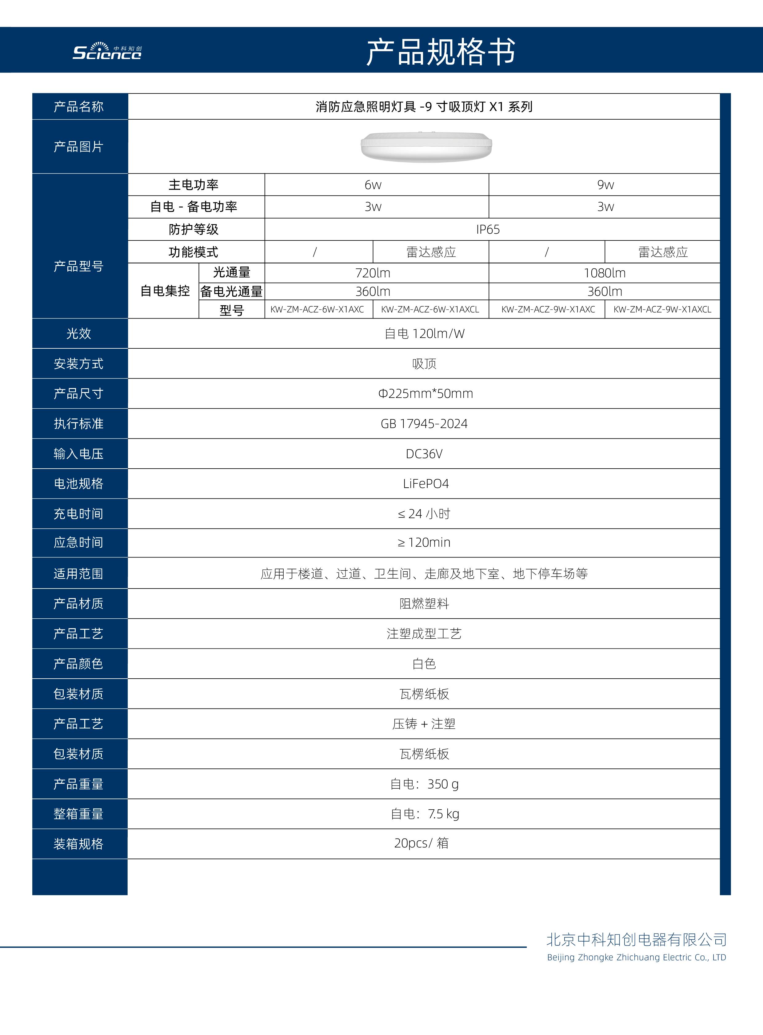 9寸吸顶灯X1系列(自电款)