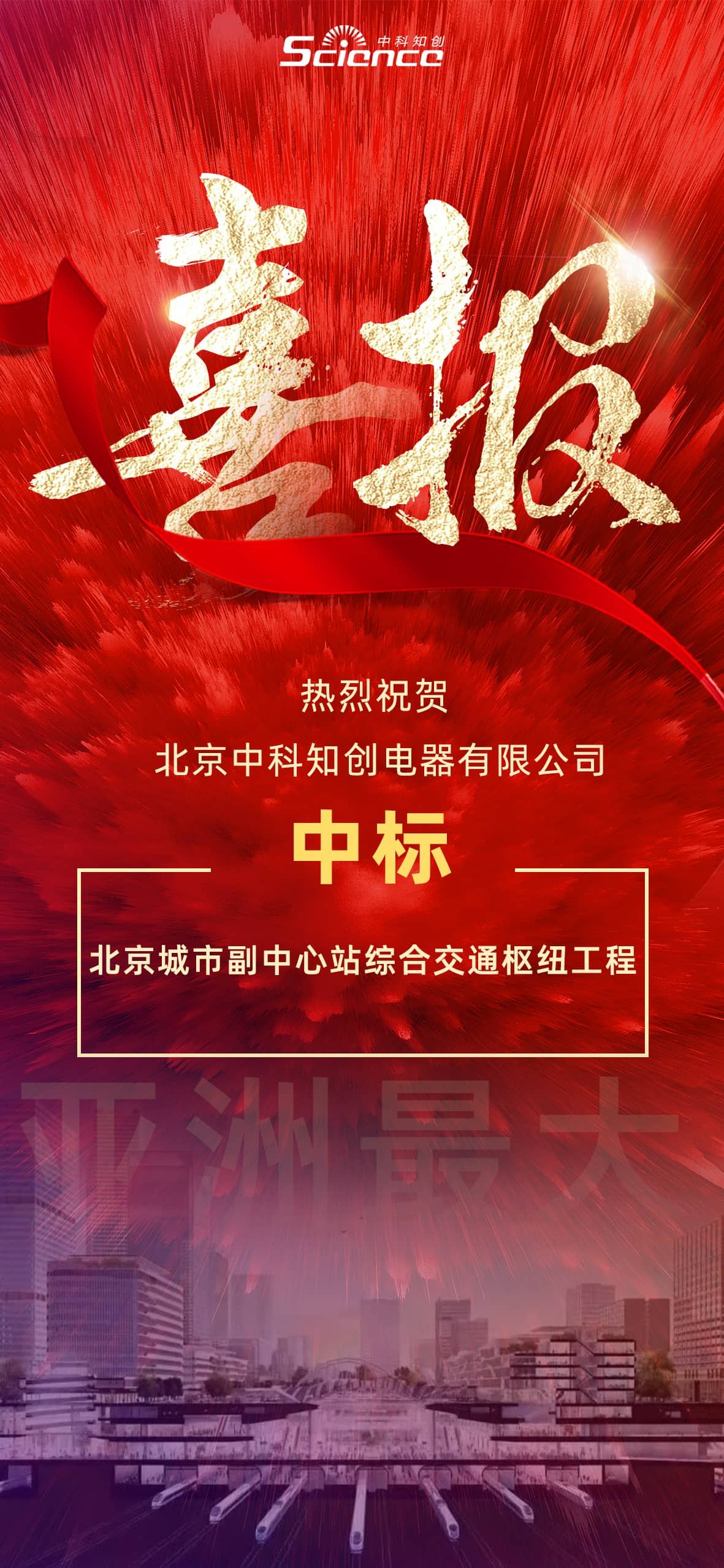 中科知创成功中标“北京城市副中心站综合交通枢纽工程(机电应急照明)”